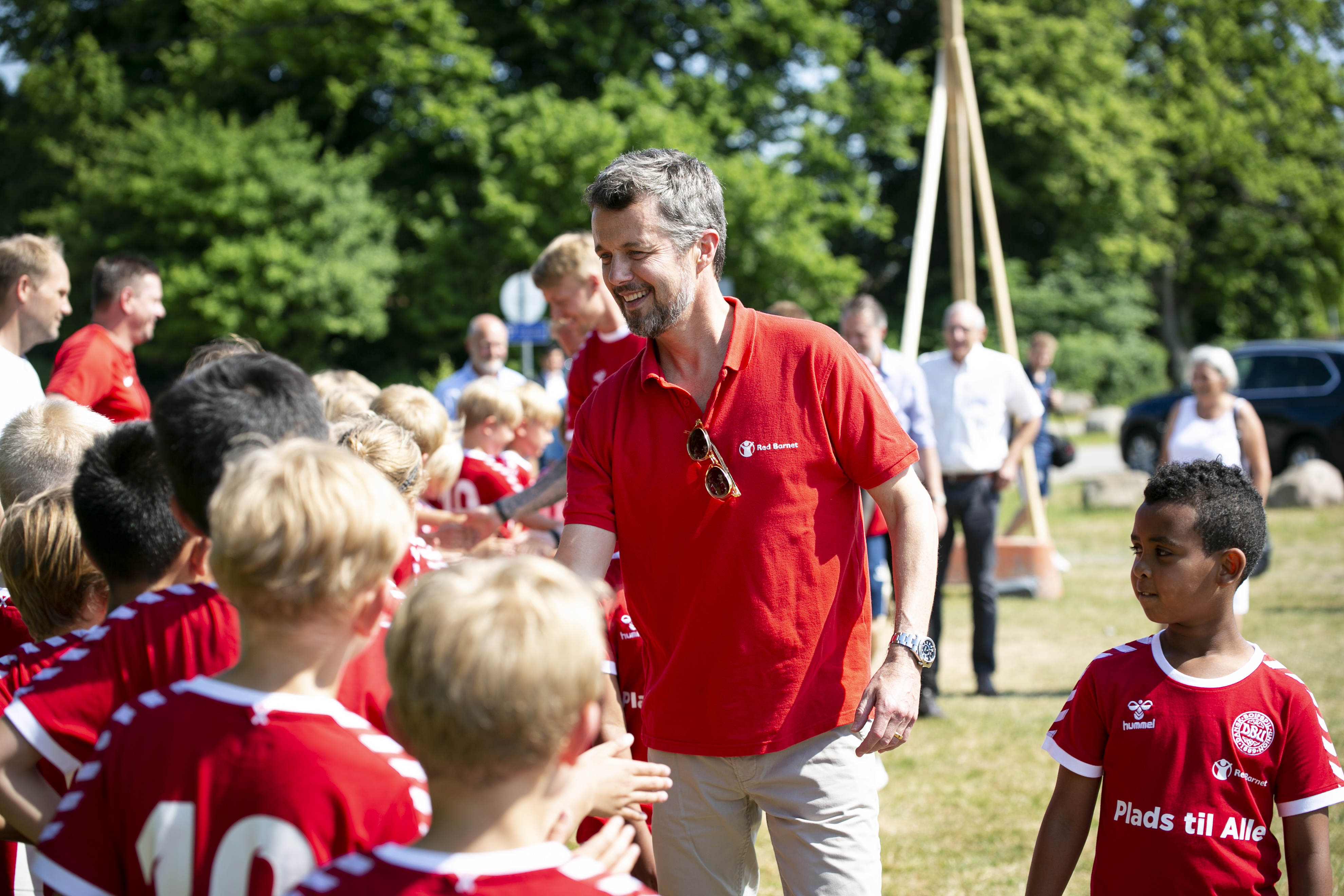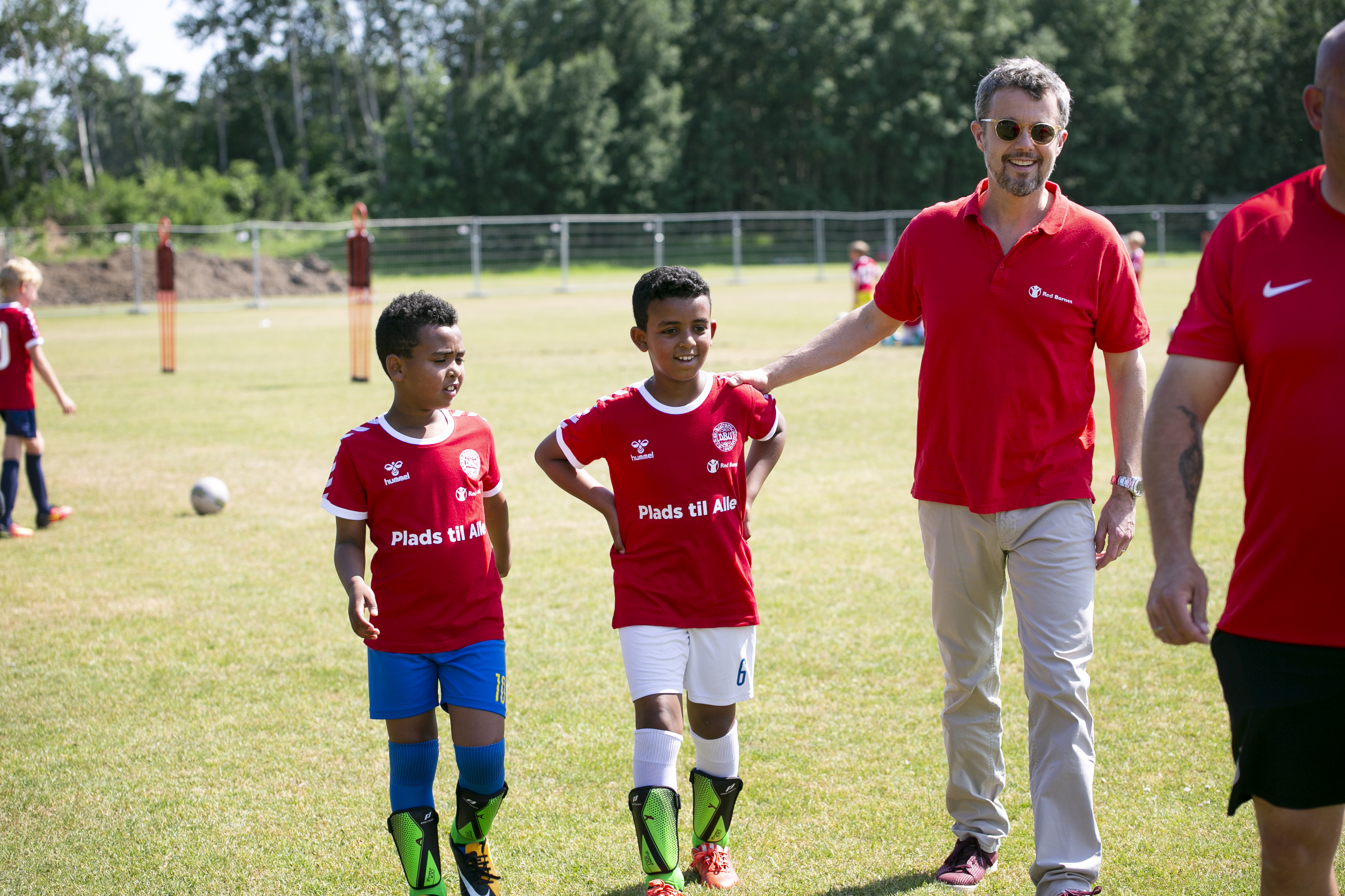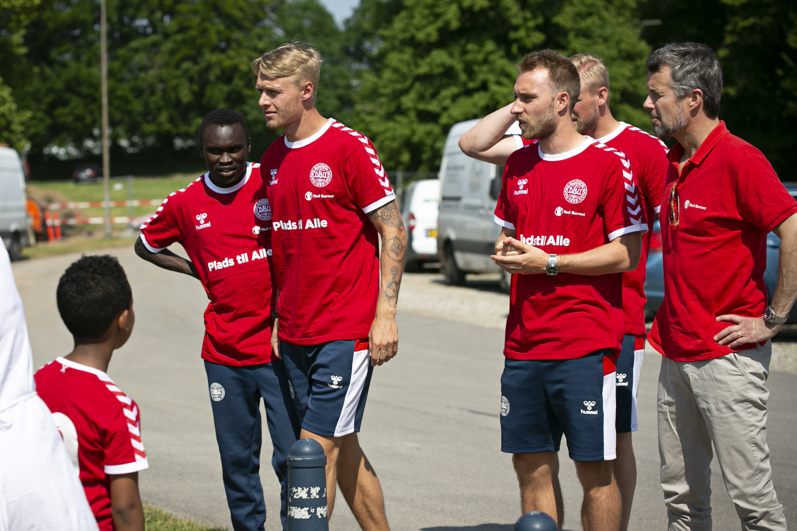 Tirsdag eftermiddag besøgte Kronprins Frederik ’Plads til Alle’ i Helsingør – en helhedsorienteret indsats, der er blevet til i et partnerskab mellem Helsingør Kommune, DBU og Red Barnet og som hjælper udsatte børn ind i foreningslivet. Kronprinsen fik følgeskab fire landsholdsspillere og samme satte de fokus på det gode og givende fællesskab, som et aktivt fritidsliv kan give.