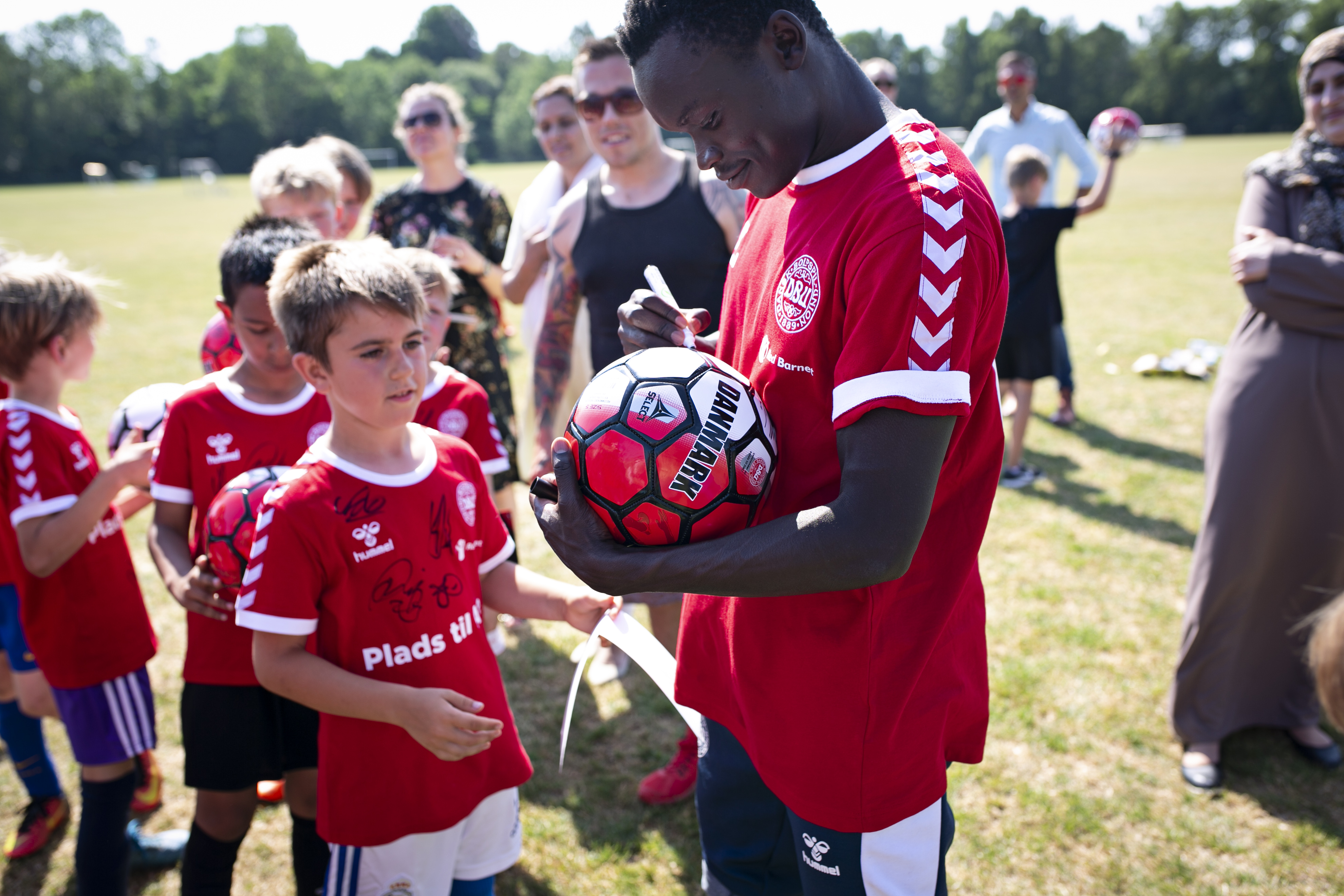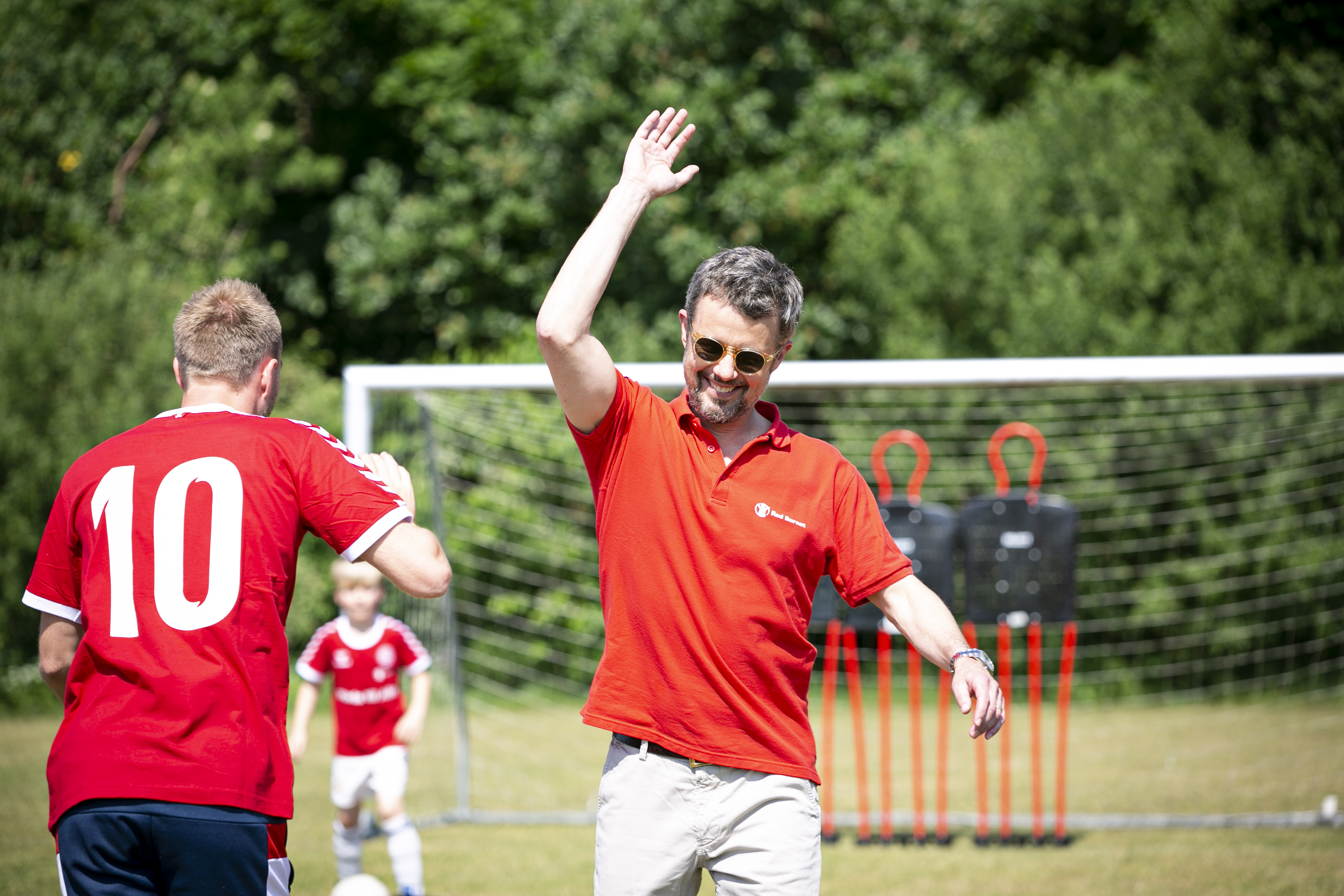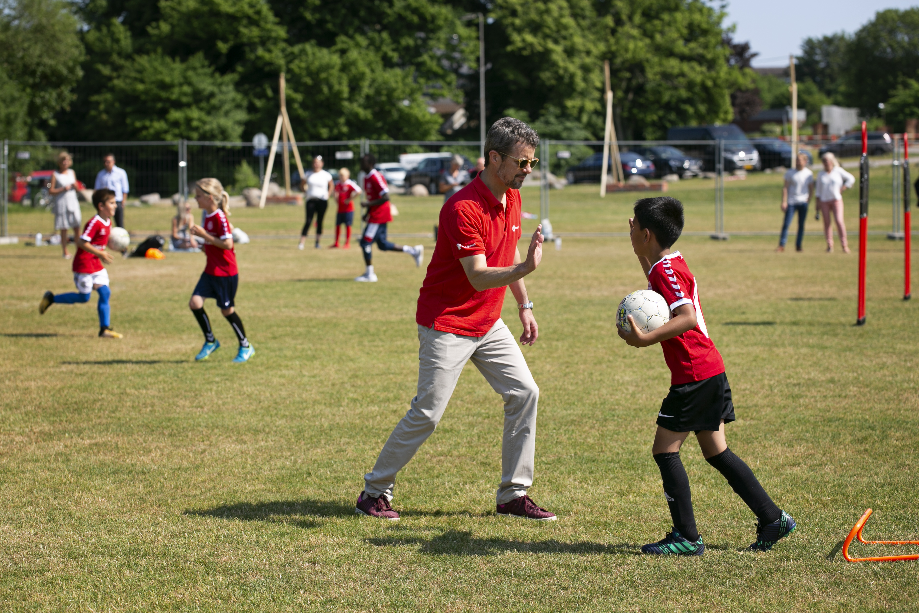 Der blev både driblet og skudt på mål, da 30 forventningsfulde drenge tirsdag eftermiddag fik lov til at spille fodbold med H.K.H. Kronprins Frederik og de fire landsholdstjerner Simon Kjær, Kasper Schmeichel, Christian Eriksen og Pione Sisto.