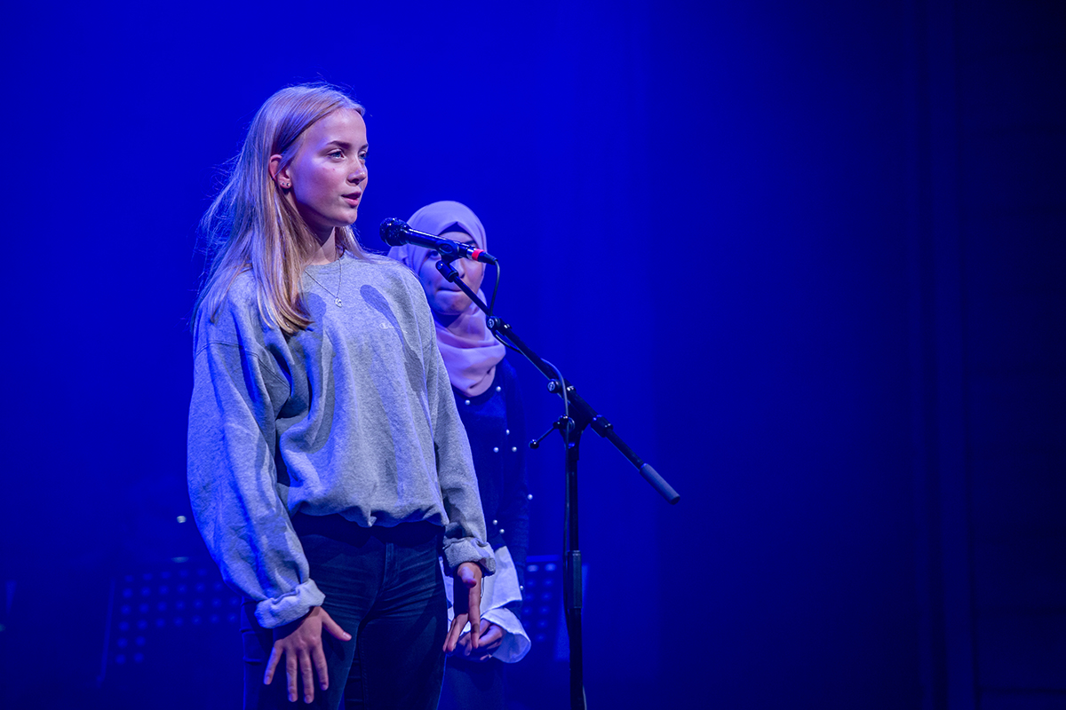 Under prisuddelingen den 15. september gik 3 modige unge piger fra Urbanskolen i Esbjerg på scenen. De havde været en del af det skoleforløb, som C:ntact genemførte i skoleåret 2018/2019 på Urbanskolen og som i foråret kulminerede med forestillingen MOD. Foran den fyldte sal i Folketeatret gav de en rørende smagsprøve på forestillingen, der sætter fokus på begrebet mod.