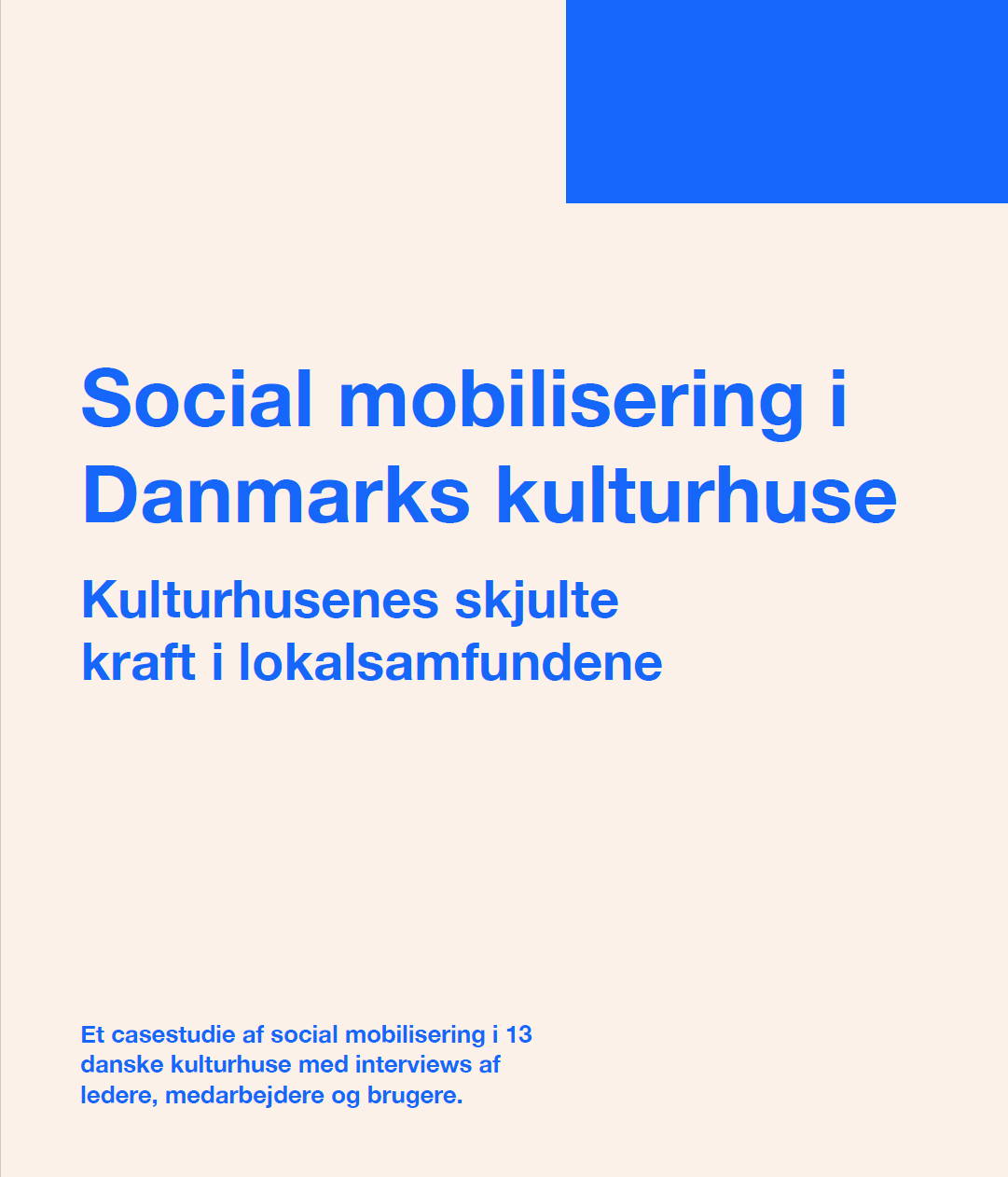 Social mobilisering i Danmarks kulturhuse samler erfaringer og indsigter fra 13 kulturhuse på tværs af landet. Publikationen giver indblik i, hvordan kultur kan fungere som en social metode – og dokumenterer, hvordan mennesker bevæger sig fra at være iagttagere til deltagere og videre til medskabere.